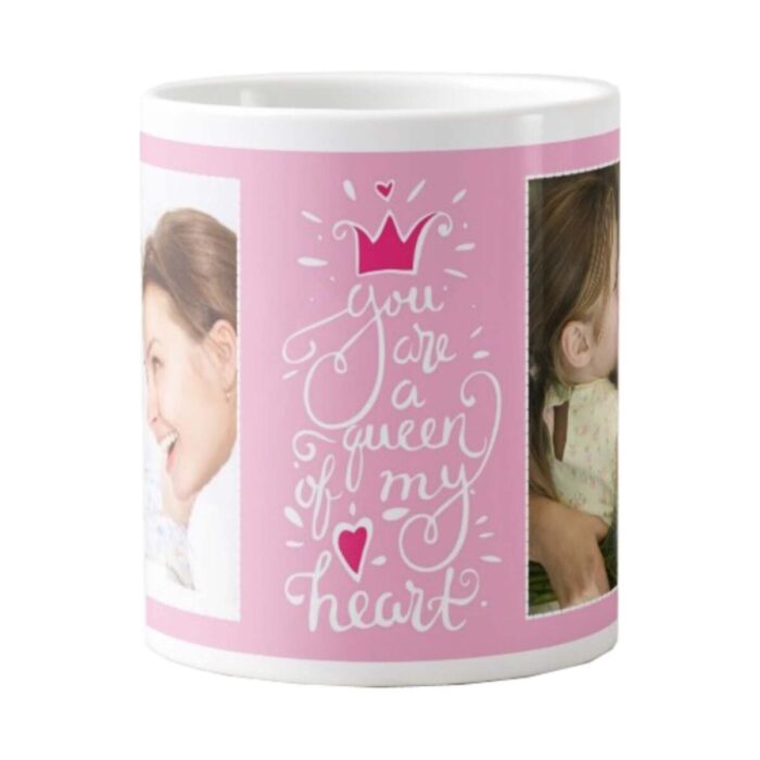 Surprise your dearest mum with a personalized mug for mom which is custom made for her. Add your own photographs and messages to the mug and create your own Personalized You Are Queen of My Heart Mug. Free personalization and free previews! The mug comes in a beautiful gift box and you can also request for a gift wrap. This personalized moms mug is ideal as birthday gifts for mom or mothers day gifts. All our mugs are made out of premium grade ceramic with Non toxic, BPA free printing which is non destructive to mother nature too.