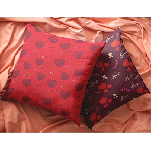 Giftsmate Decorative Cushion Cover Cotton for Couple Bedroom Cute Smiling Heart Valentine Bed Home Sofa Printed Throw Cushion Cover Set of 2