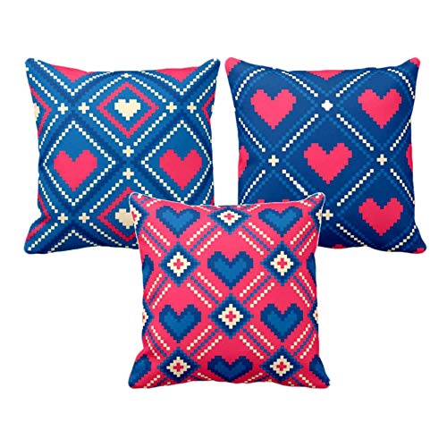 Giftsmate Decorative Cushion Covers Cotton for Couple Bedroom Valentine Bed Home Sofa Infatuated Hearts Printed Throw Cushion Cover Set of 3