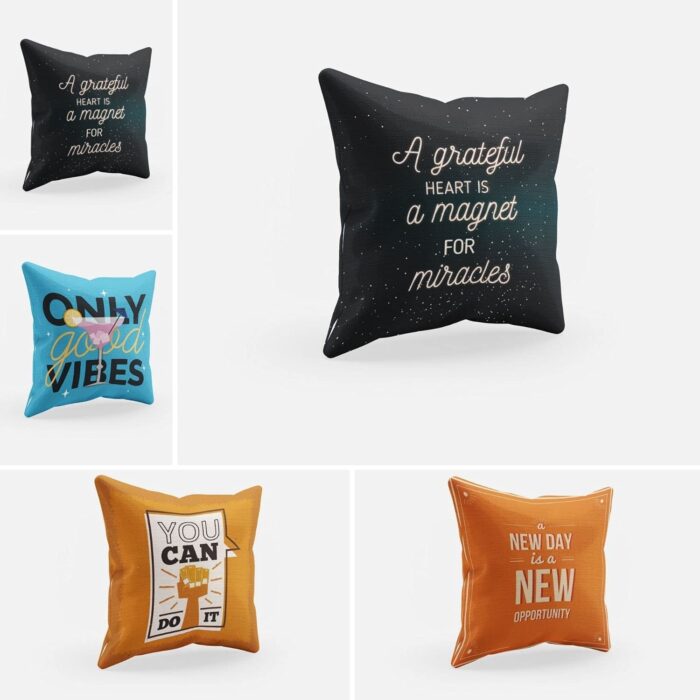 TheYaYaCafe 12X12 Inches Set Of 5 Cushion Covers A Greatful Heart Is A Magnet Motivational Quotes Printed Sofa Throw Pillows Multicolor
