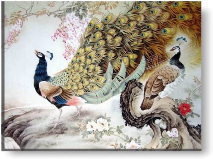Yaya Cafe™ 9×12 inches Feng Shui Timeless Love Couple Peacock Modern Art Wall Painting Canvas