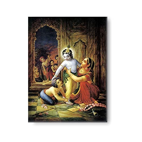Yaya Cafe Diwali Gifts Holy Yashoda Maa Krishna Idol Modern Art Wall Painting for Mom Canvas Photoframe