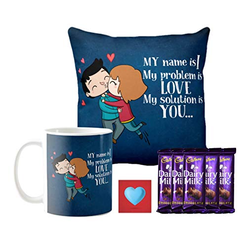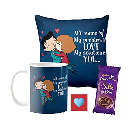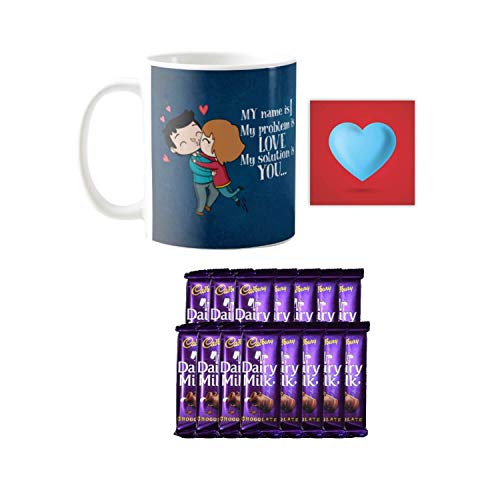 YaYa cafe Valentine Gift Combo for Girlfriend Wife Mug, Dairy Milk Silk Chocolate My Solution is You Love, with Coaster