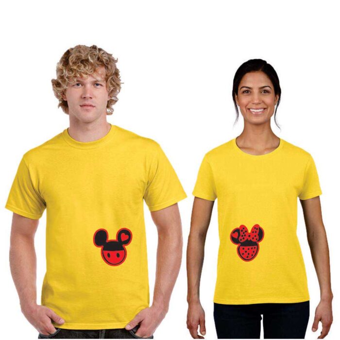 Cute Mickey and Minnie Couple T shirts with the cartoons printed on the t-shirt is a great gift for the Disney lovers and those who are just so cute themselves!