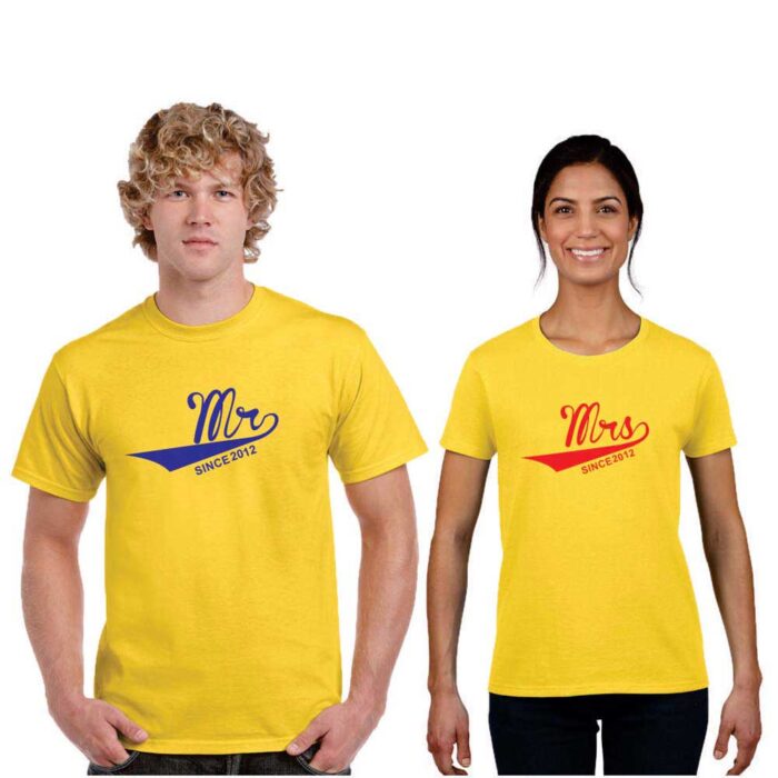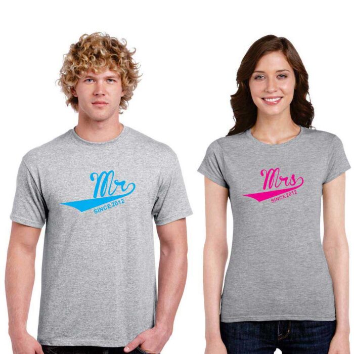 Mr. Mrs. Since Couple T-shirts for husband and wife can be customized the wedding year and are great gifts for couples on anniversaries.