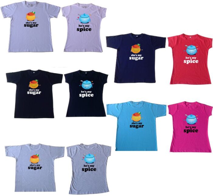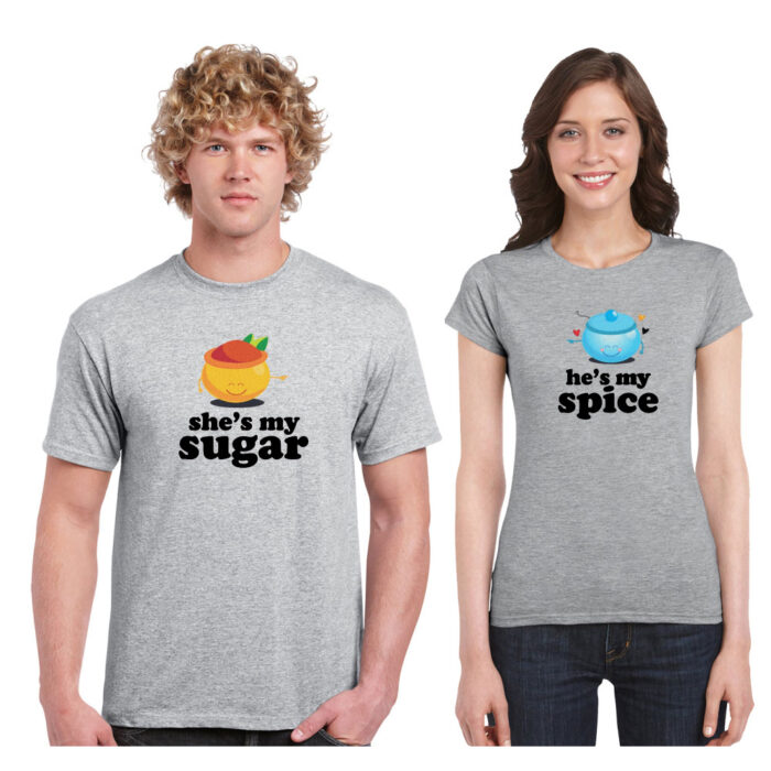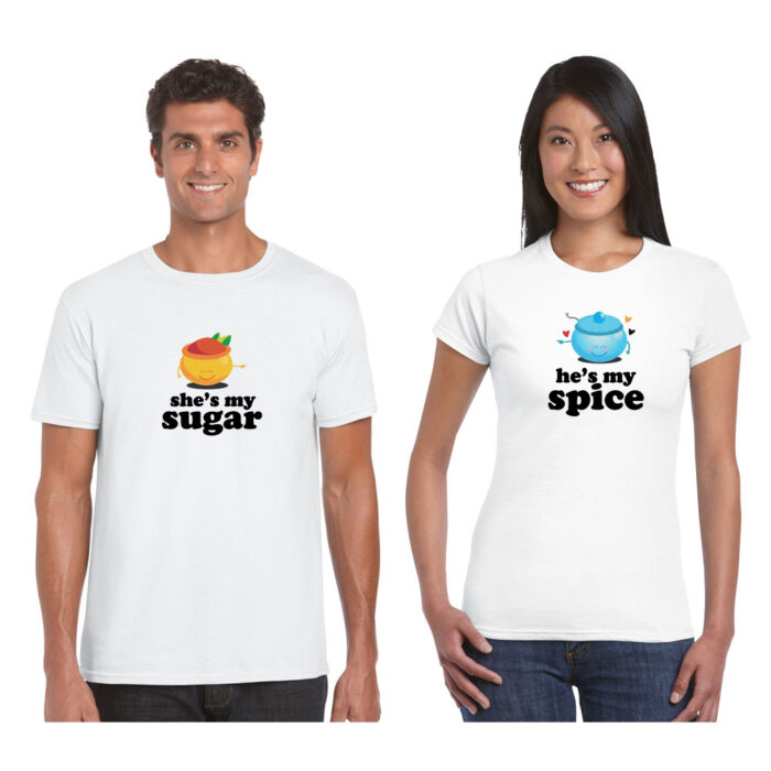 He’s my Sugar and She’s my Spice couple t shirts are from our stable of the cute matching shirts for couples and is a bestseller! Get these cute couple t-shirts for yourself or gift it to your friends on weddings, anniversary.