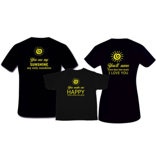 The wide collection of family tees is suited as holiday t-shirts, fathers day gifts, mothers day gifts, gifts for brother, gifts for sister, t-shirts for kids birthday party, family t-shirts for birthday, gifts for new dads, new moms, new parents gifts. Browse through our collection of Mom, Dad and Baby matching clothes and t-shirts in colorful designs and variety of sizes for everyone.