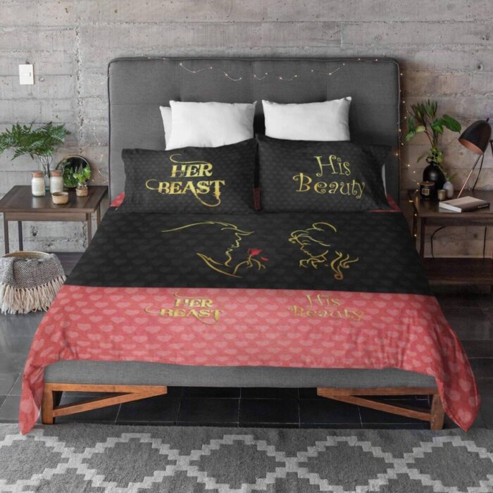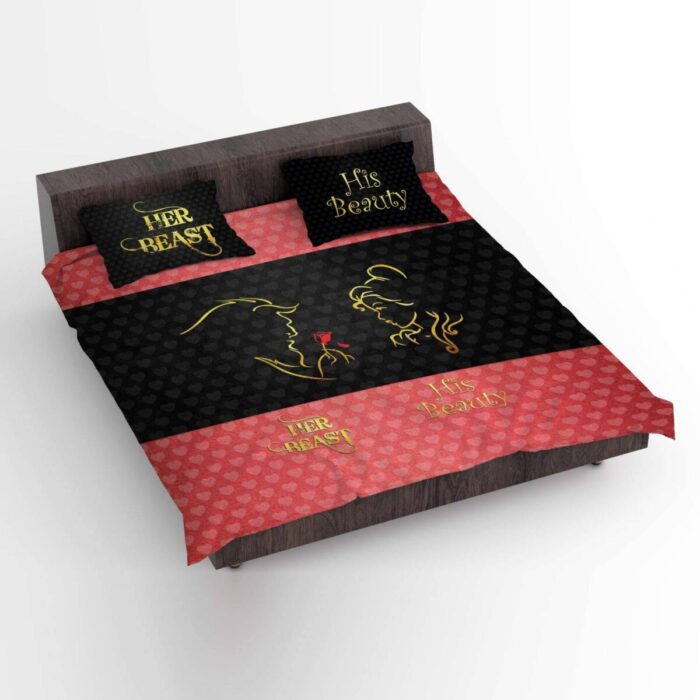 Beauty and Beast Couple Bedsheet with Pillow Covers