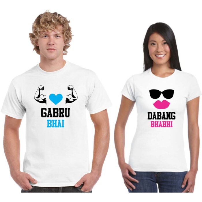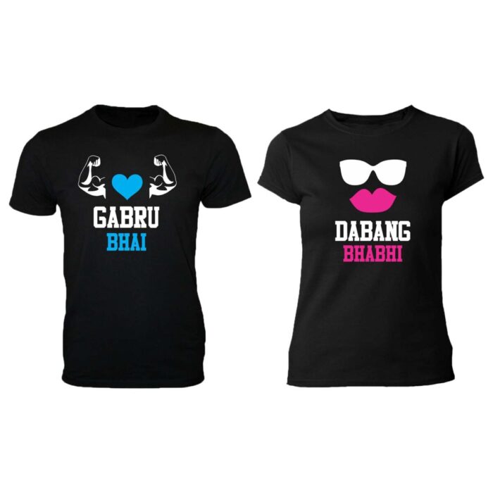 Gabru Bhai Dabang Bhabhi Couple T-shirt for the couple drenched in love!  The cute matching shirts for couples are available in different Colors of tees and is a perfect gift idea!