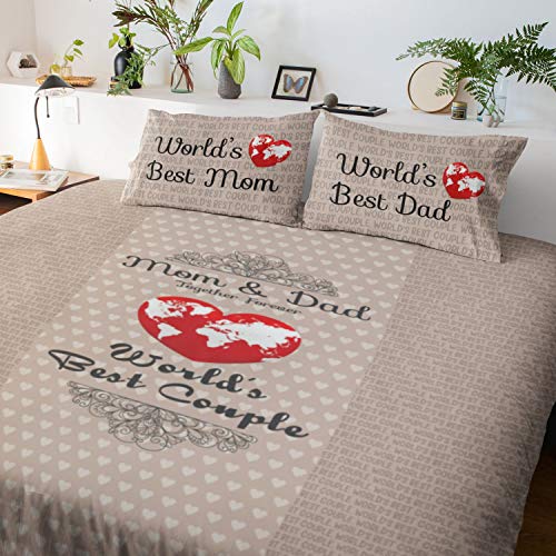 Worlds Best Couple Mom Dad Double Bedsheet with 2 Pillow Covers
