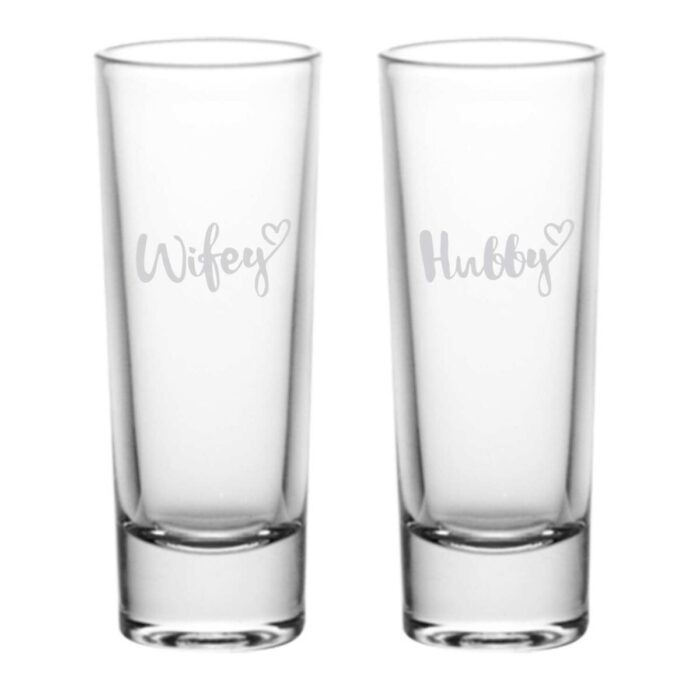 Engraved Hubby Wifey Shot Glasses Set of 2