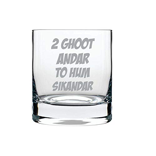 TheYaYaCafe Do Ghoot Andar to Hum Sikandar Hindi Engraved Whiskey Glass and Table Coaster -325 ml