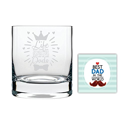 Giftsmate Fathers Day Gifts, Life Doesnt Come with Instructions but Dad Whiskey Glass for Birthday Old Fashioned Scotch Glass With Table Coaster