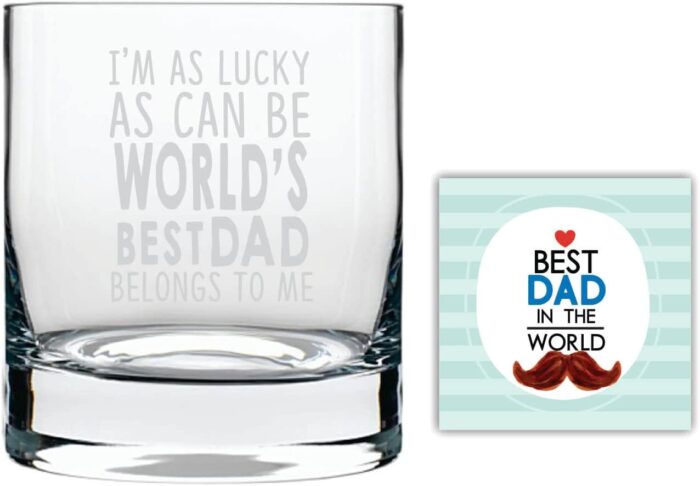 Giftsmate Fathers Day Gifts, Worlds Best Dad Belongs to Me Whiskey Glass for Birthday Old Fashioned Scotch Glass With Table Coaster