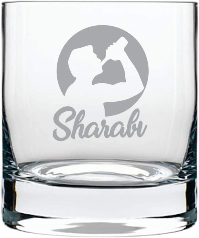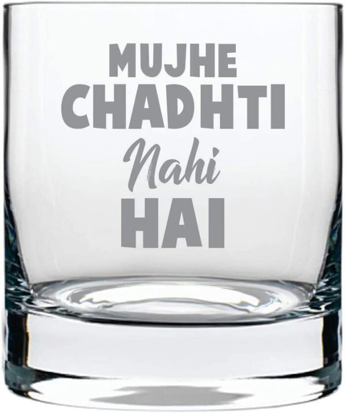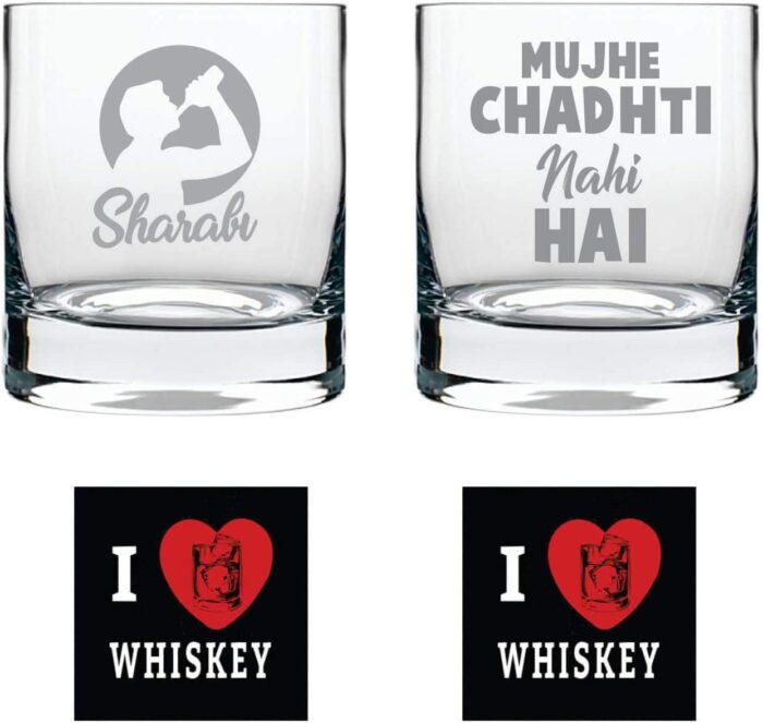 Yaya Cafe Sharabi Mujhe Chadhti Nahi Hai Hindi Engraved Stelvio Whiskey Glasses Set of 2 with Coaster – 325 ml
