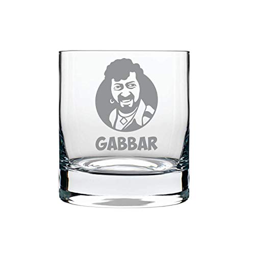 Yaya Cafe™ Gabbar Mogambo Hindi Engraved Stelvio Whiskey Glasses Set of 2 with Coaster – 325 ml