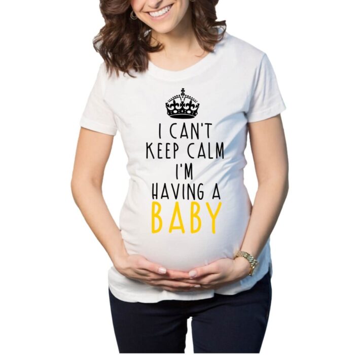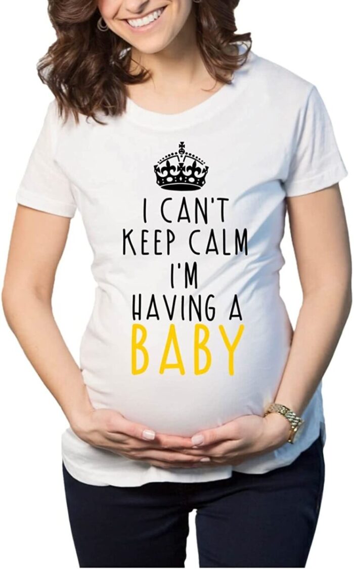 A gift widely loved by new moms to be/would be moms on their baby shower and as first Mothers Day Gifts! The maternity clothes would arrive neatly gift wrapped. In super soft fabric & choice of colors, you can also request for a gift wrap to send it her way on Mother’s day special or as mothers day gifts for mum with our worldwide delivery. Crafted with a sleek design and world class prints this I Can’t Keep Clam I am Having a Baby Maternity T-shirt is one of the best choice.
