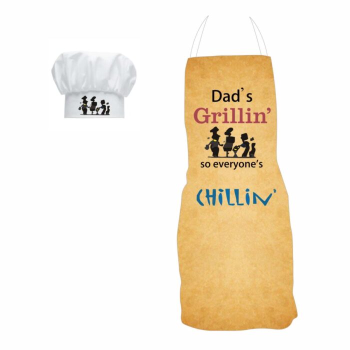 Moms Cafe Grilling Dad Mom and Dad Aprons Set with Chef hats
