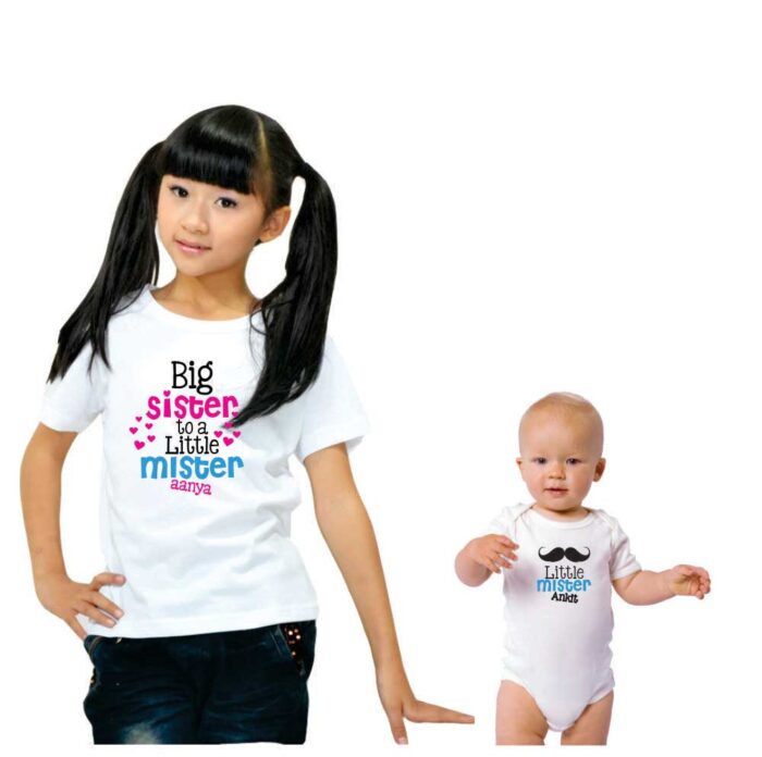 Customize this Personalized Big Brother To a Little Sister Sibling T shirts with the names of the Brother and Sister and make it your own!