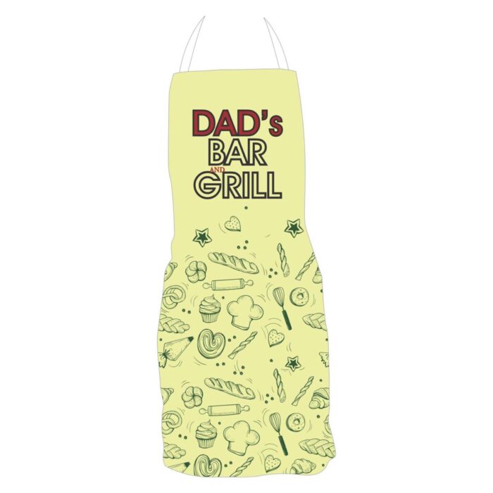 Our Dads Bar n Grill Apron from our special collection of aprons for dads is a beautiful present for papa on his birthday and as father’s day gifts. A beautiful gift for the kitchen king dads.
