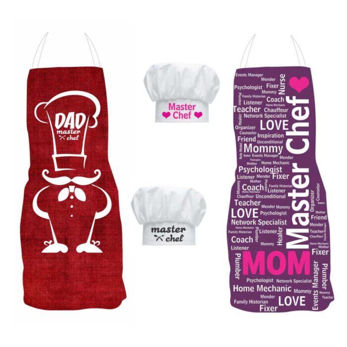 Masterchef Mom and Dad Aprons Set with Chef hats