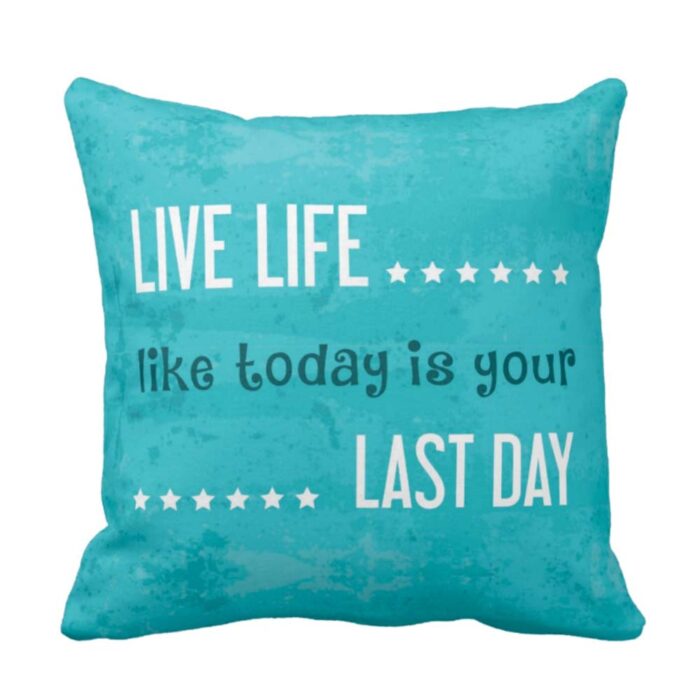 Gift Live Like its your Last Day Quotes Printed Cushion Covers Set of 4 to your folks and make the sitting space more interesting with this quotes cushion covers set.
