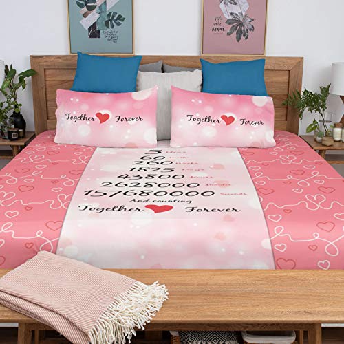 5 Years Together Forever Printed Bedsheet for Couple with 2 Pillow Covers – Pink