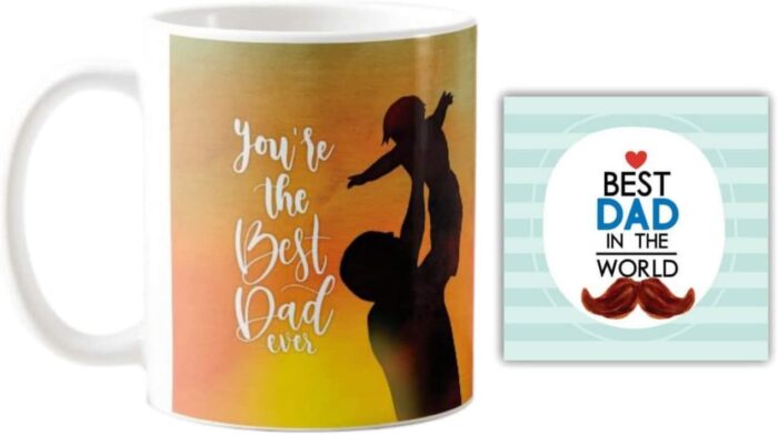 Giftsmate Fathers Day Gifts for Dad You're The Best Dad Ever Gift Set of 4 – Mug, Cushion Cover, Coaster,Keychain
