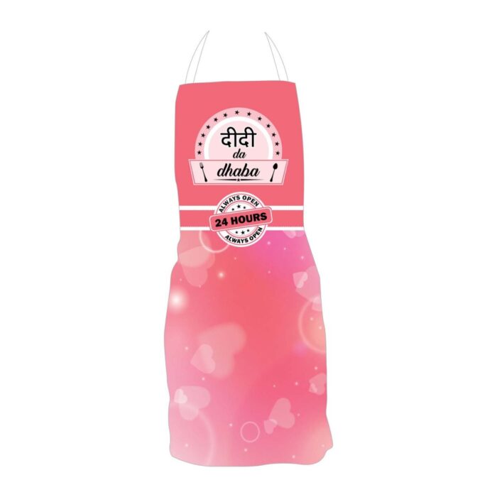 Description: Our Didi Da Dhaba Apron from our special collection of aprons for sisters is a beautiful and perfect gift apron on occassion of birthday, bhaidooj or Rakhi. A beautiful gift for the kitchen queen sister.