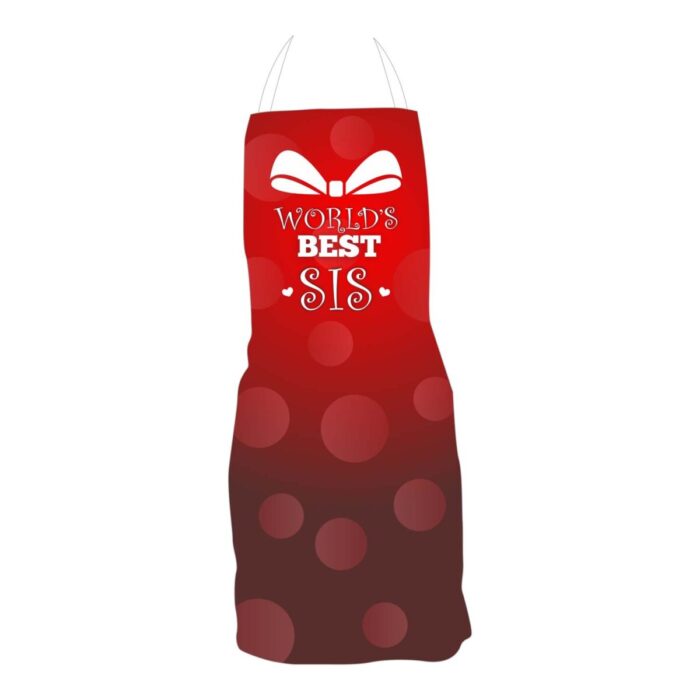 Description: Our World’s Best Sis Apron from our special collection of aprons for sisters is a beautiful and perfect gift apron on occassion of birthday, bhaidooj or Rakhi. A beautiful gift for the kitchen queen sister.